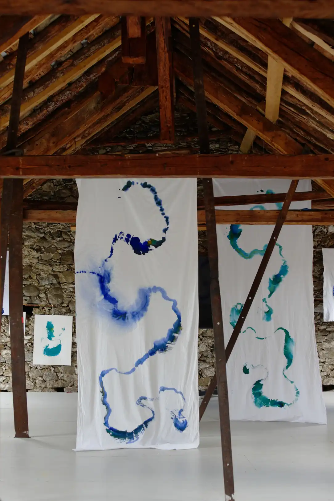 Artist residency and open studio in Arraiolos village, South Portugal. Two sets of paintings made with linen sourced in the village.
